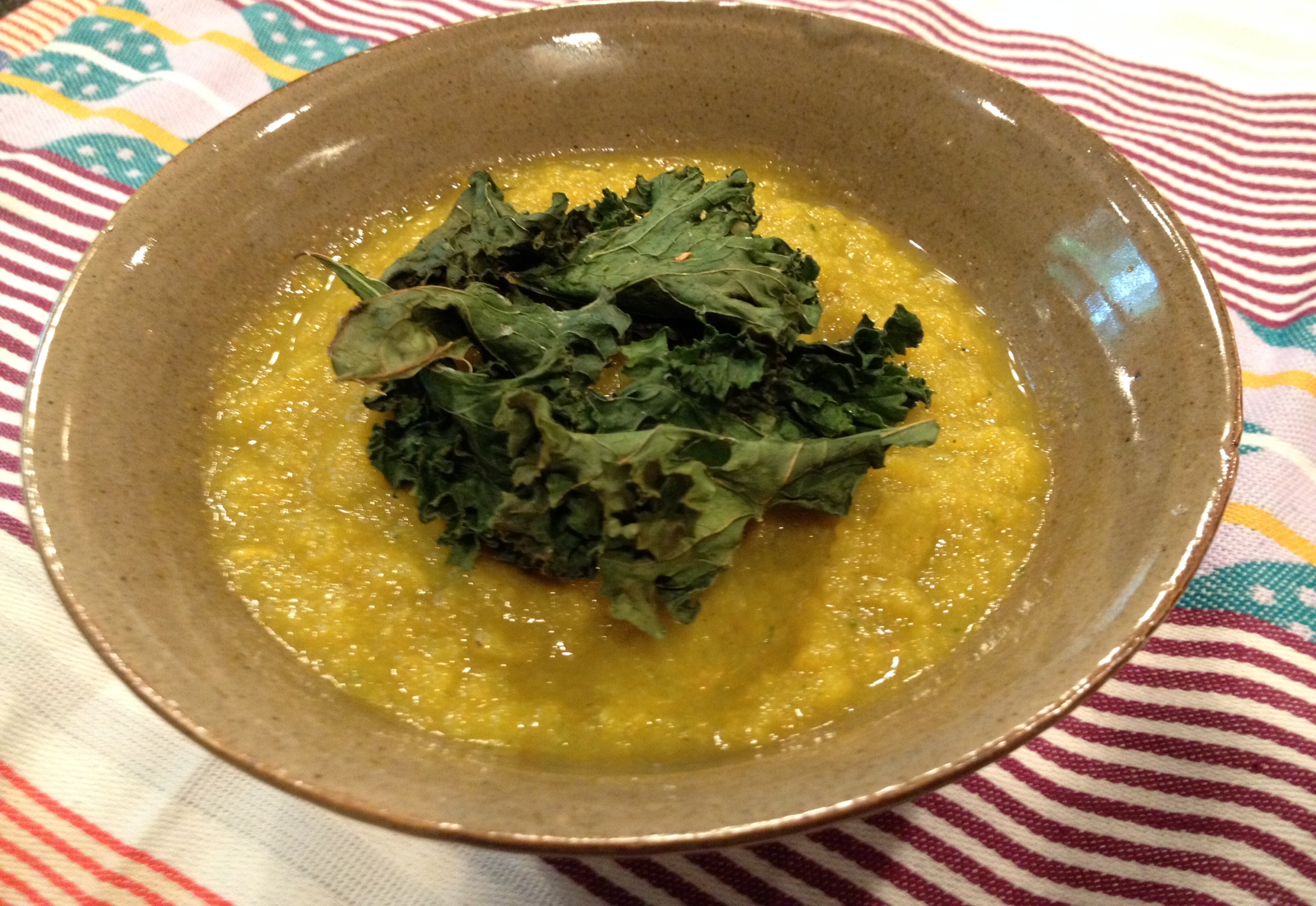 Possible toppings: kale chips, roasted chickpeas, salted nuts