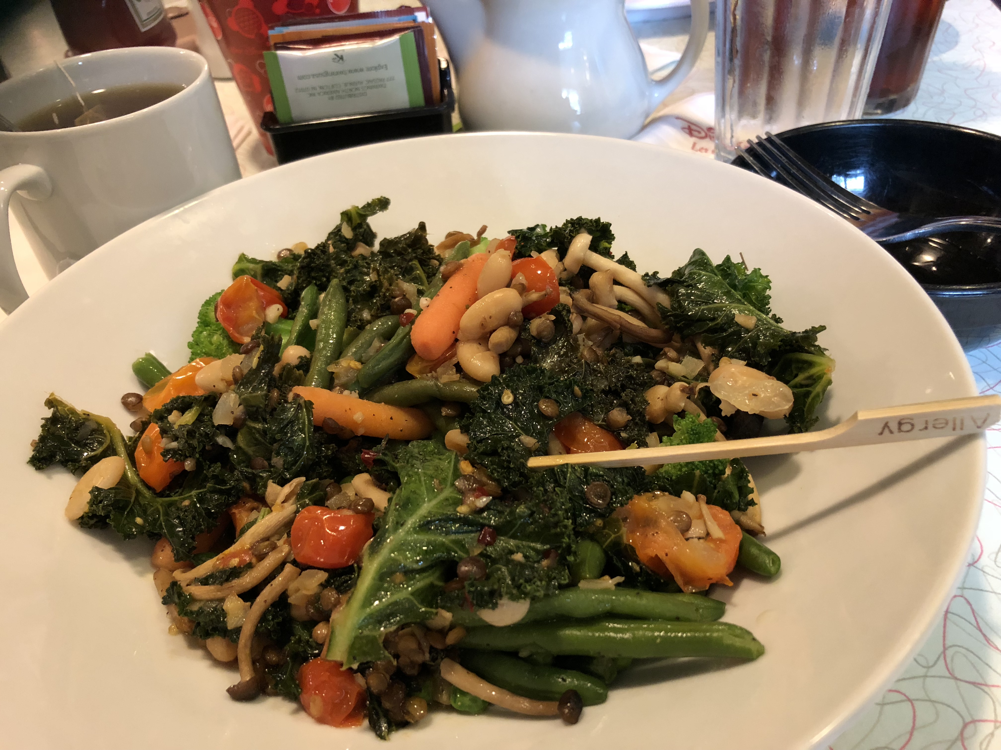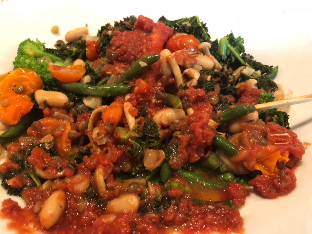 nch was waiting for me. It turns out the ragu didn’t have sauce. It was simply a medley of kale, mushrooms, cannelloni beans, and lentils. I was thrilled to see the legumes, but thought the dish needed sauce to make it come together. I remembered the marinara being gf/vegan and asked for a bowl of it to dump on. Our waitress check and confirmed it was. Once assembled together, the meal was really hearty.