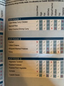Like Boma, an allergen menu is given to you when you are seated. There aren’t a ton of gluten-free and vegan options ready-to-eat on the buffet, but I’d say this year there may have been more than in previous years. However, the chefs are more than willing to make customized heaping plates of food and I’ve never left not pleasantly stuffed.